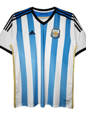 Relive Argentina’s historic 2014 FIFA World Cup journey with the official Argentina Home Shirt 2014, worn by legends like Lionel Messi, Ángel Di María, and Javier Mascherano as they reached the World Cup final in Brazil. Designed by Adidas, this jersey combines tradition and modernity, featuring Argentina’s signature sky blue and white stripes, enhanced with gold details to symbolize their two previous World Cup victories.