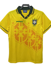The Brazil Home Shirt (1994) is a legendary jersey that symbolizes the glory of one of the most iconic moments in football history. Designed by Umbro, this vibrant yellow shirt with green accents and blue details perfectly captures the spirit of Brazilian football. The CBF crest, adorned with four stars at the time, proudly sits on the chest, representing Brazil's dominance in the footballing world.