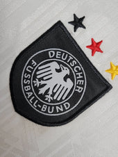 Dieses weiße Heimtrikot mit schwarzen Details wurde von Jürgen Klinsmann (#18), Matthias Sammer (#6), Oliver Bierhoff (#20) und Andreas Möller (#7) getragen, als Deutschland die Tschechische Republik im Finale mit 2:1 besiegte und Bierhoff das historische erste Golden Goal bei einem großen Turnier erzielte .