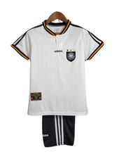 Das Deutschland-Heimtrikot 1996 für Kinder ist inspiriert vom Trikot , das Deutschland beim Triumph bei der UEFA Europameisterschaft 1996 trug, dem ersten Sieg bei einem großen Turnier nach der Wiedervereinigung.