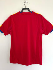 Das spanische Heimtrikot 2010 ist eines der legendärsten Trikots der Fußballgeschichte und symbolisiert das Jahr, in dem La Roja seinen ersten FIFA-Weltmeistertitel holte. Das von Adidas entworfene Trikot weist den klassischen roten Grundton mit gelben Akzenten auf, die die Nationalfarben Spaniens repräsentieren. Das gestickte Wappen zeigt stolz den in Südafrika errungenen Stern und würdigt damit eine historische Leistung. Dezente Details wie der blaue Rand und das einzigartige Stoffmuster machen dieses Trikot zu einem zeitlosen Meisterwerk.