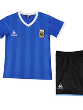 Esto el conjunto para niños incluye la camiseta de visitante de 1986 y pantalones cortos negros a juego, con el escudo clásico de la AFA y cuello en v blanco. La tela es ligero y transpirable, asegurando comodidad ya sea que su hijo esté jugando al fútbol o apoyando a su equipo.