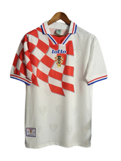 Esta camiseta se volvió legendaria durante la campaña de debut de Croacia en la Copa del Mundo, donde el equipo logró un histórico tercer lugar. Dirigido por el gerente Miroslav Blažević, El viaje de Croacia a las semifinales fue una historia de valentía, determinación y talento excepcional. La inolvidable trayectoria estableció al país como una potencia del fútbol.