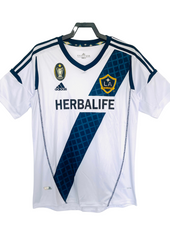 Le maillot domicile LA Galaxy 2012 est un design élégant et moderne qui symbolise la domination du club dans la Major League Soccer. Conçu par Adidas, le maillot présente une base blanche épurée avec une large bande bleu marine coupant en diagonale sur le devant, incarnant l'identité dynamique de l'équipe. Le sponsor Herbalife et le blason brodé de LA Galaxy complètent le design, faisant de ce maillot une pièce emblématique de l'histoire de la MLS.