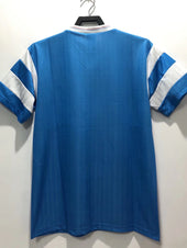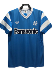 Il Maglia da trasferta Olympique de Marseille (1990) è un classico senza tempo che celebra uno dei club di calcio più di successo della Francia durante la loro era d'oro. Progettato da Adidas, questa maglia elegante presenta un base blu in grassetto con accents bianchi, riflettendo i colori iconici del club. Il Logo sponsor Panasonic attraverso il petto aggiunge un tocco nostalgico, rendendolo un pezzo distintivo per fan e collezionisti.