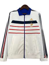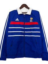 Fai un passo indietro nei giorni di gloria del calcio francese con il Giacca Retro Reversibile Francia 1998! Questa giacca unica celebra l'era trionfante quando la Francia, guidata da leggende come Zinedine Zidane, Didier Deschamps e Thierry Henry, sollevò la Coppa del Mondo FIFA 1998 in casa. Ora puoi indossare questa giacca iconica, che celebra un momento fondamentale nella storia del calcio.