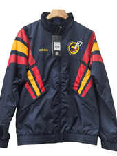 - Design Retro Classico – A giacca a vento blu navy con accents rossi e gialli, riflettendo i colori nazionali della Spagna e il suo patrimonio calcistico iconico.
