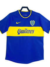 La maglia casalinga Boca Juniors 2000-2001 è una rappresentazione senza tempo del dominio del club durante un'era d'oro. Progettata da Nike, questa maglia presenta il design a strisce orizzontali blu e giallo iconico di Boca, con il Quilmes sponsor ben visibile sul petto. Il crest ricamato e i dettagli minimalisti catturano l'eleganza e la tradizione di uno dei club più di successo dell'Argentina.