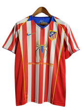 La maglia casalinga dell'Atlético Madrid 2004-2005 rappresenta uno dei design più unici del calcio, con le tradizionali strisce verticali rosse e bianche prodotte da Nike. Ciò che rende questa maglia particolarmente speciale è l'accordo di sponsorizzazione rivoluzionario con la Columbia Pictures, che significava che lo sponsor della maglia sarebbe cambiato durante la stagione per promuovere diversi film di Hollywood.
