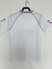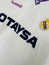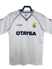 Il Maglia casalinga del Real Madrid dal 1990 al 1992, progettato da Hummel, è un pezzo senza tempo che incarna l'eleganza e l'eredità di uno dei club di calcio più iconici. Caratterizzata dal classico design completamente bianco del club, questa maglia si distingue per il suo approccio minimalista, omettendo notevolmente lo stemma del club. Il Otaysa il logo dello sponsor sul petto ha aggiunto un tocco nostalgico, mentre le iconiche chevron di Hummel sulle spalle e sulle maniche hanno offerto un accento elegante.