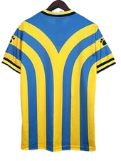 La maglia casalinga del Málaga CF 1997-1998 rappresenta un'era fondamentale nella storia del club, mentre si riappropriava della sua importanza. Progettata da Kelme, la maglia presenta le tradizionali strisce verticali azzurro chiaro e bianche del Málaga, riflettendo le radici andaluse del club. Il logo della zampa Kelme e lo stemma ricamato del Málaga aggiungono un tocco unico, mentre il design minimalista emana un'eleganza senza tempo.
