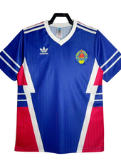 La maglia casalinga della Jugoslavia del 1990 è un design senza tempo che rappresenta l'ultima apparizione della nazione sul palcoscenico mondiale come squadra di calcio unificata. Progettata da Puma, la maglia presenta una base blu reale sorprendente con accenti bianchi e rossi, riflettendo i colori della bandiera jugoslava. Il colletto a V audace e lo stemma jugoslavo ricamato completano il look, rendendo questa maglia un pezzo prezioso di nostalgia calcistica.
