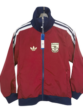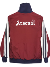 - Design Retro Iconico – A giacca a vento rosso scuro con dettagli blu navy e bianchi, caratterizzato dalla tipografia classica dell'Arsenal sul retro.