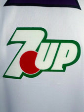 • Sponsor: La parte anteriore della maglia mostra in modo prominente il 7UP logo, aggiungendo un contrasto vivace allo schema di colori viola e bianco.
