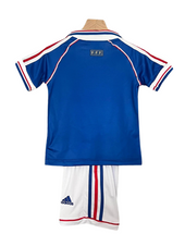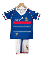 Se tuo figlio sogna di segnare come Zidane, guidare come Deschamps, o celebrando come Petit, questo Francia 1998 Kit Casa Bambini è il modo migliore per rivivere Il più grande trionfo dei Bleus. Ordina ora e lascia che il tuo piccolo calciatore indossi la storia!