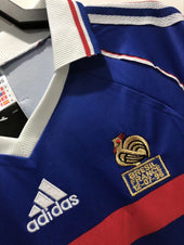 Il Maglia da casa a maniche lunghe della Francia della Coppa del Mondo FIFA 1998 è un pezzo indimenticabile della storia del calcio, indossato durante Il primo trionfo della Coppa del Mondo dei Bleus sul suolo di casa.
