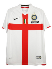 TheMaglia Away Inter Milan 2007-08è uno deii kit da trasferta più distintivinella storia del club. Progettato daNike, questa maglia presenta unarosso audace Croce di San Giorgiosu unbianco base pulito, rendendo omaggio ala bandiera storica della città di MilanoQuesto kit è stato indossato daInter di Roberto Mancini, mentre difendevano con successo il loroTitolo Serie Aitalian , consolidando il loro dominio nel calcio italiano.