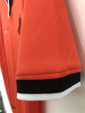 TheMaglia Casa Paesi Bassi (1998)è un classico intramontabile che rappresenta uno dei momenti più memorabili nella storia del calcio olandese. Progettato daNike, questa iconica maglia presenta il sorprendentebase arancionesinonimo dei Paesi Bassi, accentuato dabordo nerosul colletto e sulle maniche. Ilcrest KNVBsi posa orgogliosamente sul petto, simboleggiando la ricca eredità del calcio olandese.