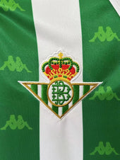 Il Maglia da casa a maniche lunghe del Real Betis dal 1995 al 1997 è un pezzo classico che incarna la ricca eredità e lo stile distintivo del club. Progettato da KappaQuesto jersey è notevole per le sue tradizionali strisce verticali verdi e bianche, che riflettono i colori iconici della squadra.