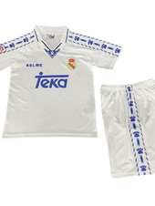 TheKit Casa Real Madrid Bambini della stagione 1996-97è veroclassico dell'era dei Los Blancos, progettato daKelme. Presenta il club’saspetto iconico tutto biancocondettagli blu, questo kit è unda avere assolutamente per ogni giovane Madridista.