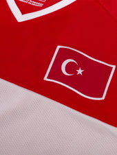 • Geborduurde Turkse Vlag: Een trots symbool van het nationale team op de borst.