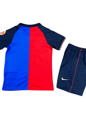 Deze FC Barcelona kinderset bevat het shirt en de shorts , ontworpen voor comfort en stijl. Verkrijgbaar in de maten 16 tot 28 (ongeveer 2 tot 13 jaar ), deze set is gemaakt van ademend, lichtgewicht materiaal , waardoor het perfect is voor zowel casual wear als voetbaltraining .