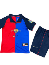 Het seizoen 1999-2000 markeerde het honderdjarig jubileum van FC Barcelona en de club vierde dit met dit iconische shirt met een rood-blauw splitontwerp en de exclusieve honderdjarige badge . Deze kit is een must-have voor elke jonge Barça-fan die de erfenis van legendes als Rivaldo (#11), Patrick Kluivert (#9), Luis Figo (#7), Pep Guardiola (#4) en Luis Enrique (#21) wil eren .